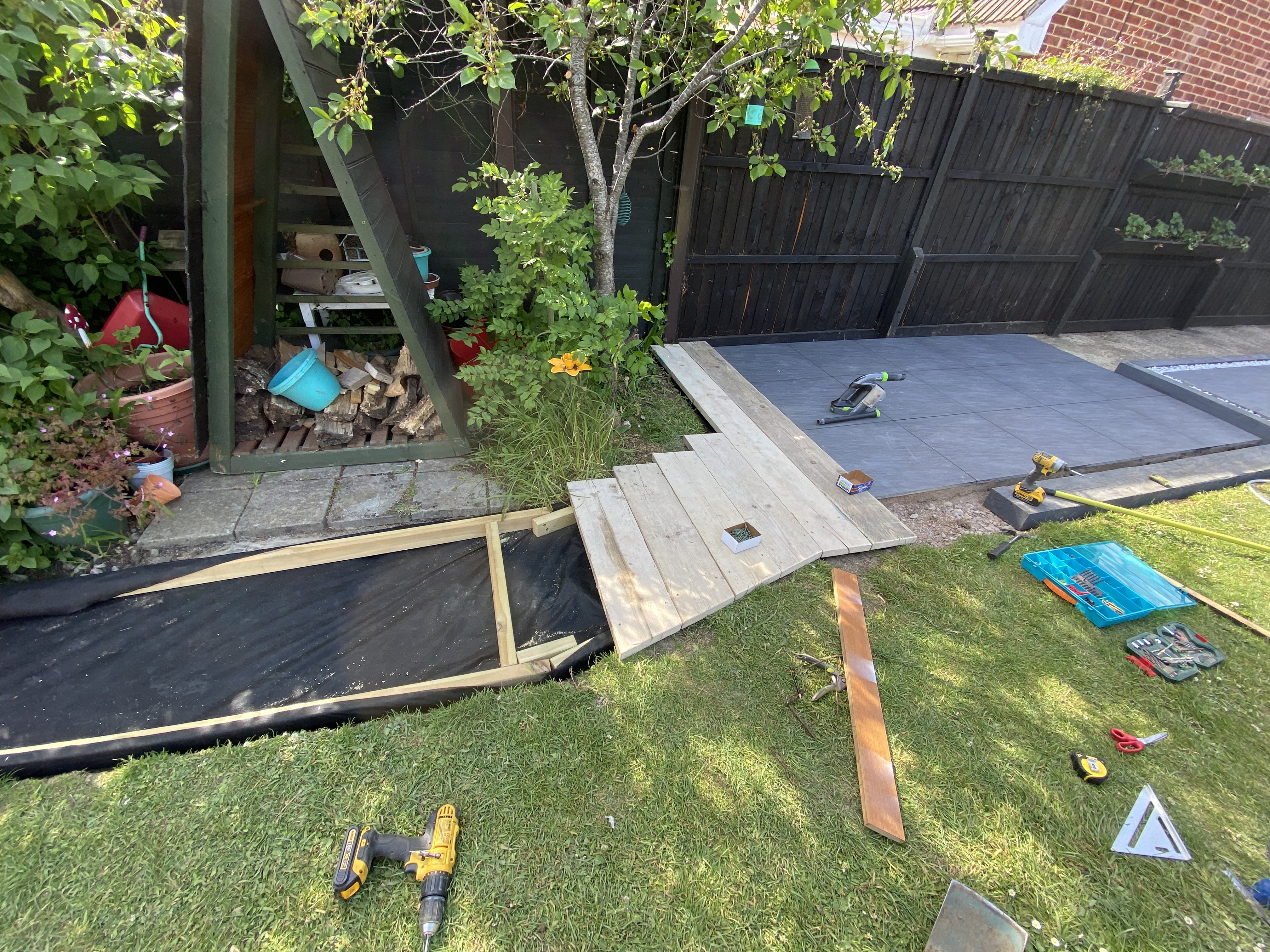 Recently, I undertook the task of linking our patio area to the back of the garden, where my shed and workshops are located. It took me a couple of days to finish, resulting in a significant enhancement of both the appearance and usability of our garden. By utilising partially reclaimed wood and coordinating colours, this addition seamlessly connects the key zones within our outdoor space.